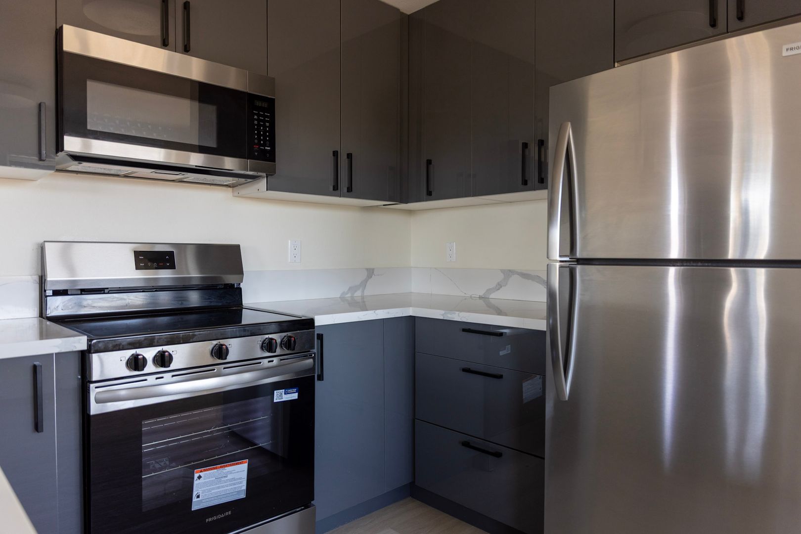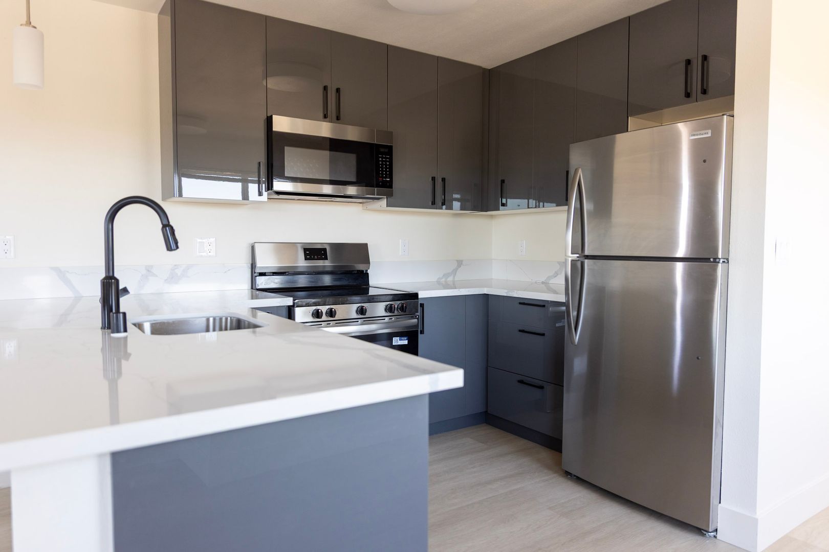 Enjoy designer kitchens with quartz countertops, stainless steel appliances, and in-unit laundry. The community also provides gated access, reserved parking, an on-site gym, and EV charging stations for your convenience.